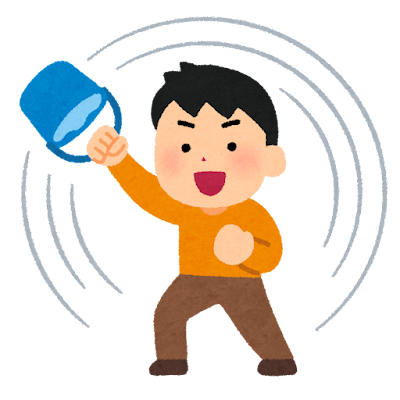 ①も②も、バケツごと体重計に乗れば総重量は同じ63kgになります。でも、水の重さを考えるとどちらの方が【重力の影響】が少ないかは明白です。バケツが軽いほうが回しやすいですよね?