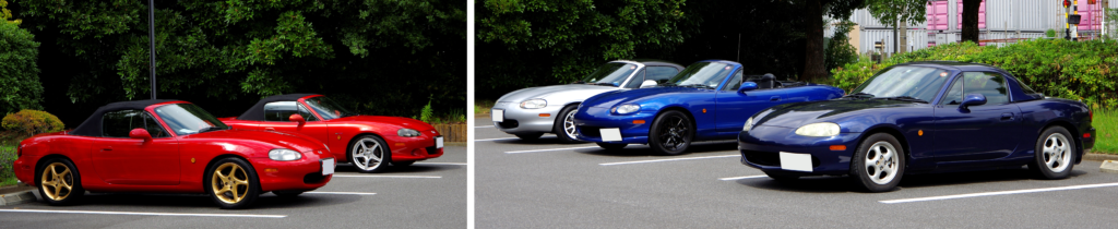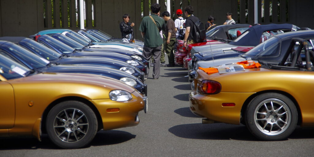 ・会場に車が並んだ時。NBオンリーは参加したミーティングでは初めてだったので今までにない光景でした。(Iさん)