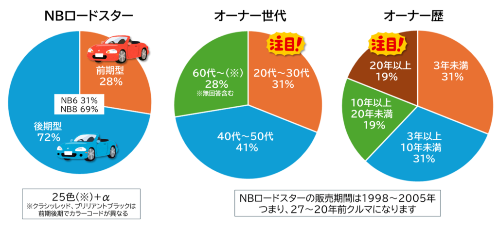 見どころはそれなりにあったかと思いますが、会場をお借りしている都合上、どうしてもタイトなスケジュールになってしまったのは、申し訳なく思っています。繰り返しますが、個人的には、来場いただいた一台一台のロードスターをもっとじっくり見たかった・・・!なお、参加者サマリーは上記の通りです。特に、感染症騒動以降にスポーツカーのような趣味車が再び注目を集めていることを示唆しているデータな気がします。