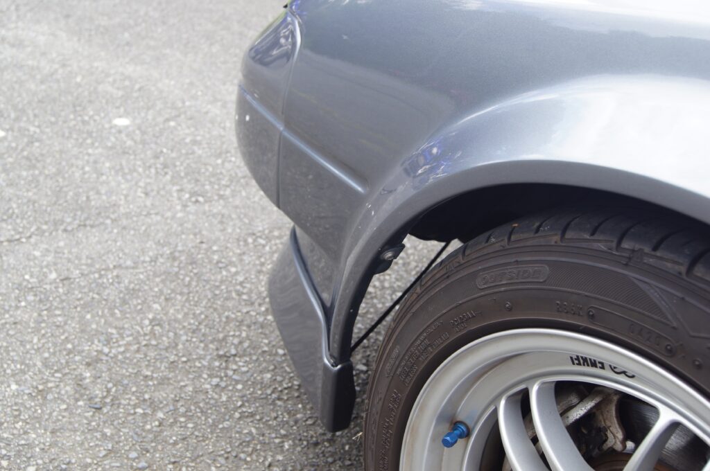 また、この時代のクルマにはインナーフェンダーがなく、針金でバンパーを釣っています。軽量化といえば理にかなった構造ですが、これでいいんだ・・・なんて思いました(ちなみにNAロードスターも同じ構造になっています)。