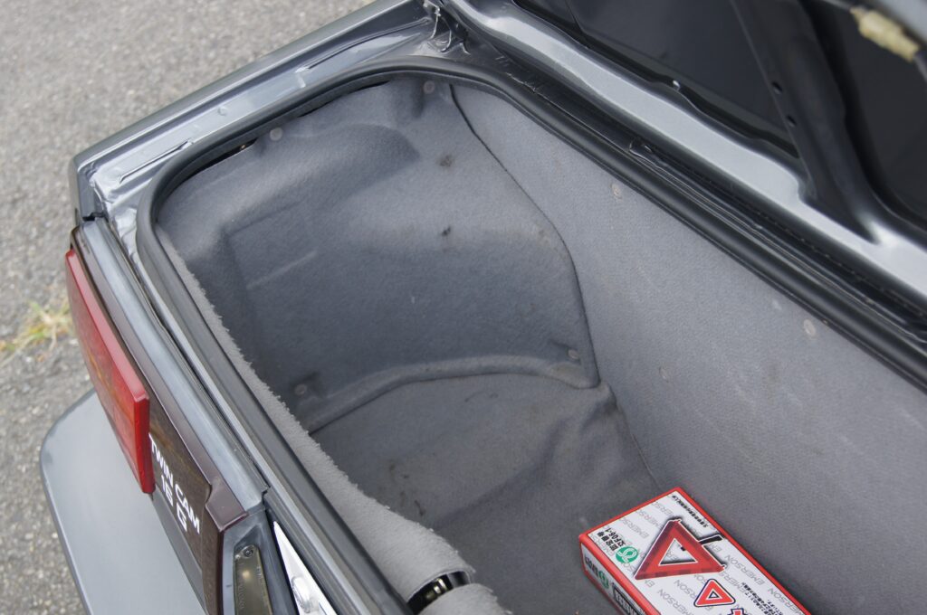 キャビン寄りのエンジンルームに対して隔壁を挟み、外側にはラゲッジルーム(トランク)が設置されていました。深さと幅がありますので、買い物袋くらいは普通に入る空間になります。ただし、エンジンとマフラーの熱がダイレクトに伝わってくるので、ナマモノを運ぶには配慮が必要かもしれません。また、日常使いのシーンでは座席後方にも結構なスペースがあるので、思うほど不便ではなさそうです。