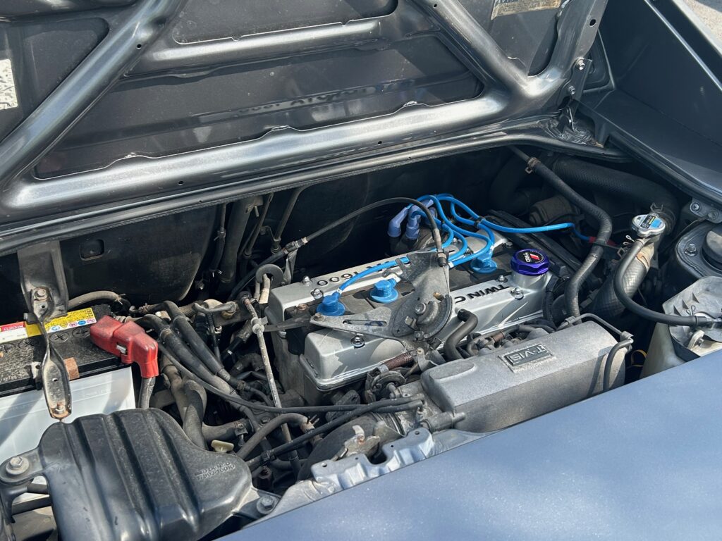 ンジンルームを覗くとヘッドカバーに造形されている「TOYOTA」ロゴが逆側(内向き)になっていることからも、カローラベースである片鱗を感じることが出来ます。なお、SC(スーパーチャージャー)モデルではリファインされヘッドカバーの方向が直っているそうです。
