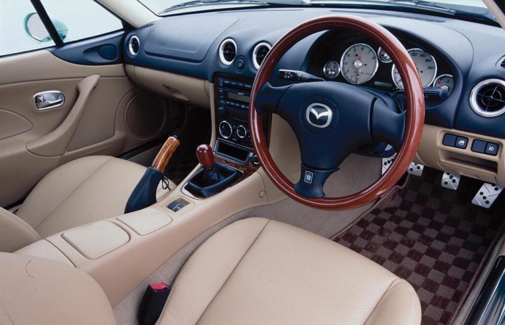 ここで工学的に最も注目すべきは、ルーフの形状です。よく観察すると、兄貴分である「RX-7(FD3S)」と同じく、ルーフの中央が若干凹んだ「ダブルバブルルーフ(バリオルーフ)」が採用されています。これは、イタリアのザガートがモータースポーツ車両で多用した手法で、「前面投影面積(空気抵抗の元)を最小限に抑えつつ、ヘルメットを被った乗員の頭上空間(クリアランス)だけを確保する」という、極めて合理的かつ色気のあるフォルムです。
