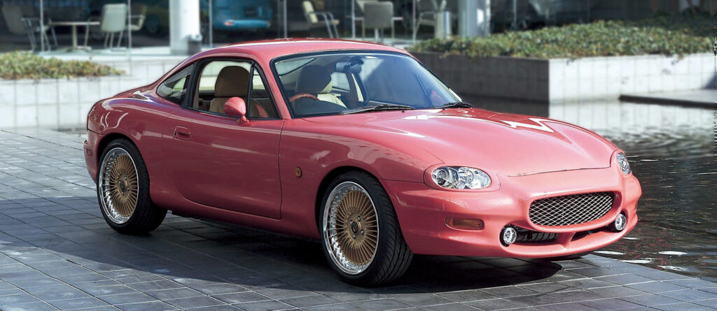 ベース車両はNAからNBロードスターへと進化しています。デザインを担当したのは、かつてファストバックの「F010」を手掛け、当時はマツダE&Tの所属となっていた福田成徳氏です。そのコンセプトは「50年代のイギリスGTカー」。
