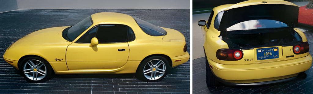 なお、ドアのパーティングラインやサイドシルのボリュームは、2代目Miata(NBロードスター)へフィードバックされています。この「M Coupe」はマニアの間でいまだに根強い人気があり、北米のイベント等では実走可能なこの車両が展示されることがあります。