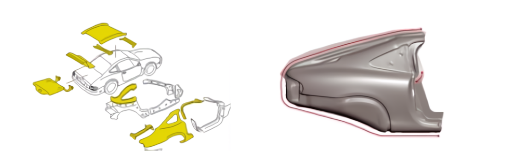 また、特徴的な「絞りの深いリアフェンダー」などの外板パーツは、少量生産を前提としたため、高額な量産用金型を新造せず、試作用の簡易型(ソフトツール)をそのまま用いてプレス成形されました。