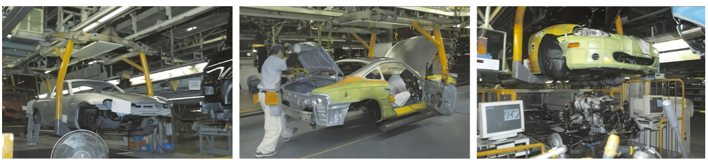 2)「Aピラーがない状態のシャシー」を、生産ラインから途中で抜き取り、特装車を作る関連会社「マツダE&T」の工房へ搬入する