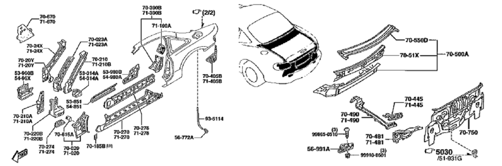 デザイン要件を満たしつつコストを抑えるため、ベース車のアンダーボディとフロント周りはそのまま流用されました。しかし、新設されるルーフやトランクリッドに加え、クォーターインナー、バルクヘッド、Aピラーなどは、現行のNB用部品を一度カット(追加工)してから使用するという、途方もない手間がかけられています。