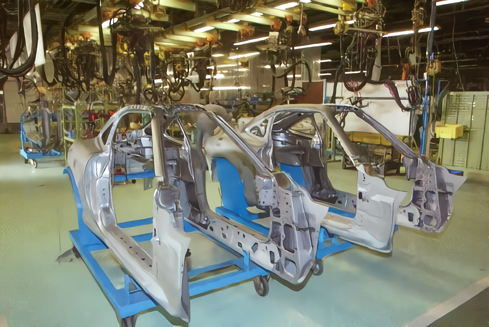 1)マツダ本社の量産ラインで、下回り(プラットフォーム)が作られる