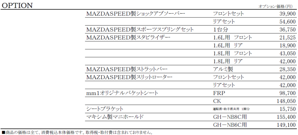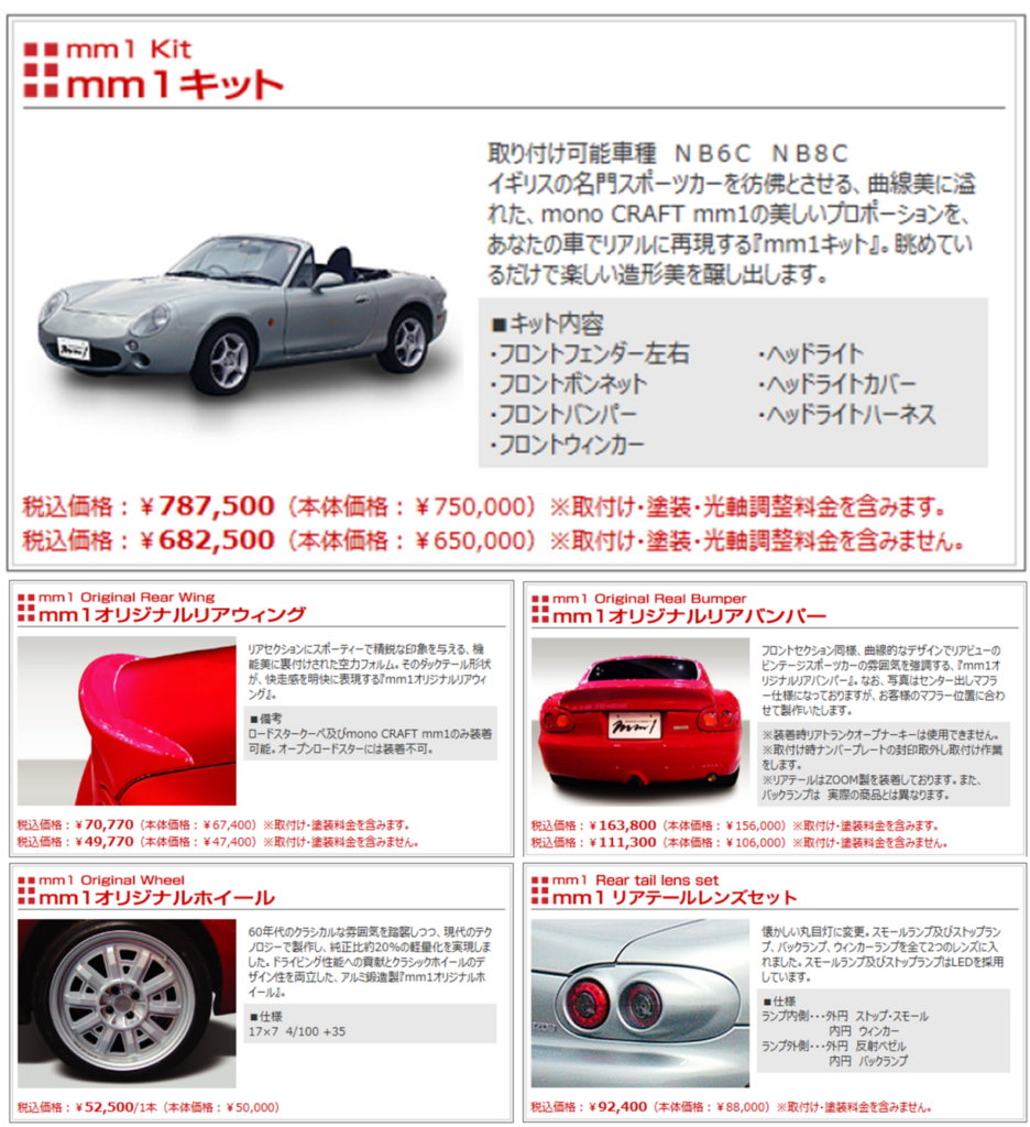 発売時からリアセクション「アフターパーツも販売予定」とされていた通り、幌モデルのNBロードスターのフェイススワップ対応パーツをはじめ、さまざまなMM1専用のオプションパーツが用意されました。