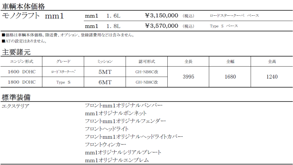 「mm1」というネーミングは社内コードネームを採用したとされていますが、当時のロードスター専門誌には「M(マツダ)の魂(Mind)を込めた第一号」という意味がある、と記されていました。